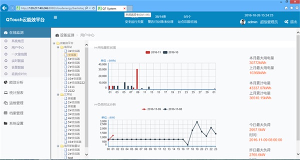 概要顯示當(dāng)月、當(dāng)年用能情況,并與往年同期用能進(jìn)行對(duì)比,掌握用能趨勢(shì)。實(shí)時(shí)動(dòng)態(tài)監(jiān)測(cè)企業(yè)當(dāng)前用電功率。通過(guò)設(shè)置每日用能的計(jì)劃值,實(shí)現(xiàn)用能的定額管理,并與實(shí)際用能進(jìn)行對(duì)比,對(duì)可能出現(xiàn)的用能突增進(jìn)行預(yù)警。將各類(lèi)用能折算為標(biāo)準(zhǔn)煤,全局掌握企業(yè)用能情況。