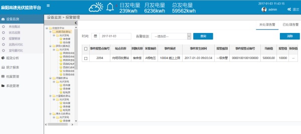 可以看到每個監(jiān)測點的日語年發(fā)電量情況,以及各個站點的總發(fā)電和一個時間段內(nèi)的發(fā)電量情況。