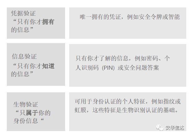 身份認(rèn)證是指對(duì)個(gè)人或機(jī)構(gòu)實(shí)體的身份進(jìn)行驗(yàn)證的過(guò)程,主要采用以下三種驗(yàn)證方式: