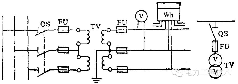 由三個(gè)單相互感器一、二次側(cè)均接成Y形,可供給要求線(xiàn)電壓的儀表和繼電器以及要求相電壓的絕緣監(jiān)視電壓表。
