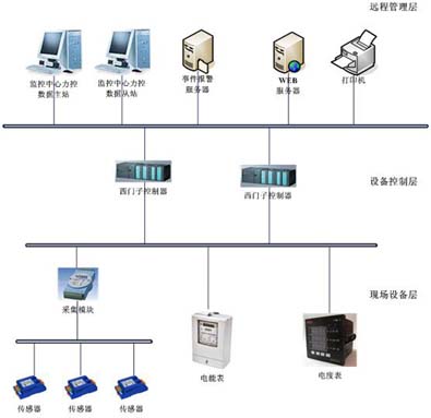 現(xiàn)場(chǎng)設(shè)備層主要由智能電能表、電度表、通信模塊和通信線組成。根據(jù)現(xiàn)場(chǎng)需求所有現(xiàn)場(chǎng)設(shè)備均可通過(guò)以太網(wǎng)方式將數(shù)據(jù)送到設(shè)備控制層的西門子S7-400H。包括三相電流、三相電壓、有功功率、無(wú)功功率、功率因數(shù)等四遙數(shù)據(jù)。