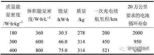 循環(huán)壽命的估計需要考慮全壽命里程設計要求,每次使用續(xù)航里程和壽命末期每次充電續(xù)駛里程因素,這樣估算20萬公里需要的電池循環(huán)壽命為2000次;在不提高電動車能量利用效率[10.85kWh/(100kmt)],保持電池包體積不變的情況下,當電池的質量能量密度達到400Wh kg-1時,電動車的續(xù)航里程可以達到521km,20萬公里要求的電池循環(huán)壽命估算值為600次,如果能達到這一技術標準將解決消費者對電動汽車里程焦慮的問題(表8)。