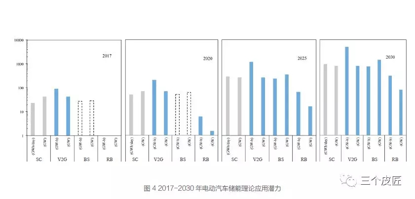 2.電動汽車儲能可顯著提升電力系統(tǒng)可再生能源消納能力電動汽車可通過有序充電、車電互聯(lián)、退役電池儲能等方式直接或間接參與電力系統(tǒng)運行,實現(xiàn)與儲能相同或相似的系統(tǒng)應(yīng)用價值??紤]到未來電動汽車的高市場滲透率,其2030年理論儲能規(guī)??蓾M足高比例可再生能源系統(tǒng)中小時級電力平衡,有效解決當前困擾可再生能源發(fā)展的電力系統(tǒng)短期調(diào)峰能力不足的問題。