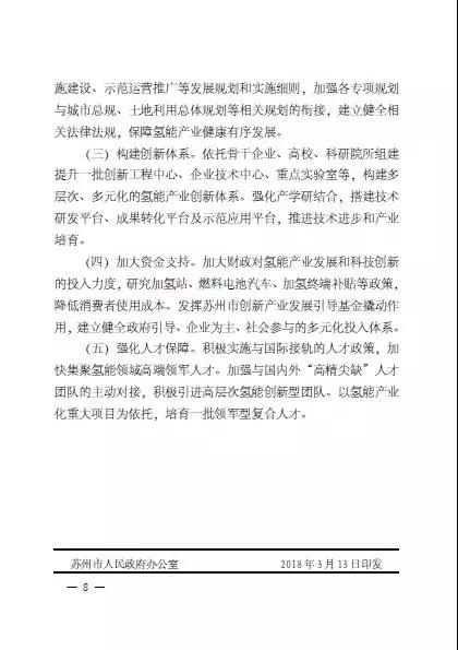 近日,蘇州市發(fā)改委網(wǎng)站公布了市政府辦公室關(guān)于轉(zhuǎn)發(fā)蘇州市氫能產(chǎn)業(yè)發(fā)展指導(dǎo)意見(jiàn)(試行)的通知稱,為了搶抓氫能產(chǎn)業(yè)發(fā)展機(jī)遇,積極推動(dòng)能源