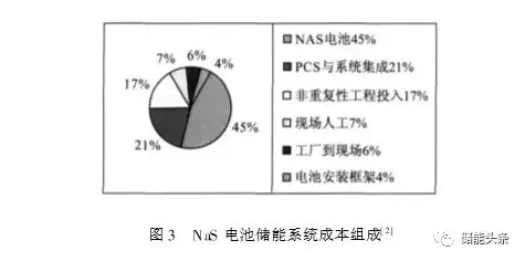 美國NaS電池項(xiàng)目中的價(jià)格組成如圖3所示,其中鈉硫電池的成本占到了總成本的45%。