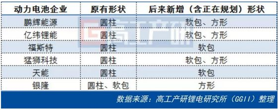 隨著國(guó)內(nèi)從韓國(guó)引進(jìn)的全自動(dòng)18650產(chǎn)線投產(chǎn),國(guó)內(nèi)18650動(dòng)力電芯日產(chǎn)能已超過(guò)1200萬(wàn)只,已遠(yuǎn)大于需求,因此擴(kuò)產(chǎn)會(huì)有所收緊。圓柱動(dòng)力電池的自動(dòng)化程度高、單體能量密度高、成本低,但其pack復(fù)雜、循環(huán)壽命短、且快充性能不佳,因此其當(dāng)前主要用在微型車(chē)及物流車(chē)上,而A級(jí)及以上車(chē)型的裝車(chē)量還很少。短期來(lái)看國(guó)內(nèi)乘車(chē)企業(yè)更傾向于方形或軟包電池,因此2017年開(kāi)始部分圓柱電池企業(yè)開(kāi)始布局其他形狀的動(dòng)力電池。