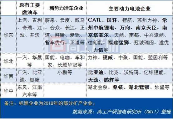 動(dòng)力電池作為汽車(chē)的核心部件,以圍繞車(chē)企建廠為核心的趨勢(shì)明顯。華南地區(qū)3C電子、數(shù)碼家電等發(fā)達(dá),但汽車(chē)產(chǎn)業(yè)發(fā)達(dá)程度低于華東等地區(qū)。從新勢(shì)力造車(chē)企業(yè)的產(chǎn)能布局來(lái)看,也集中分布在華東地區(qū),因此動(dòng)力電池?cái)U(kuò)產(chǎn)仍以華東、華北等地區(qū)為主。