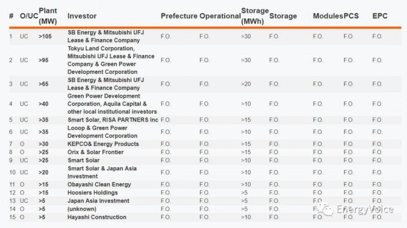目前,光伏項(xiàng)目與儲(chǔ)能相結(jié)合的機(jī)會(huì)已經(jīng)大量涌現(xiàn)。為了了解日本對(duì)與基于儲(chǔ)能的光伏項(xiàng)目的需求度,我們搜集整理了日本最大的15個(gè)光伏+儲(chǔ)能項(xiàng)目名單,包括已投入運(yùn)營(yíng)和正在建設(shè)的項(xiàng)目。