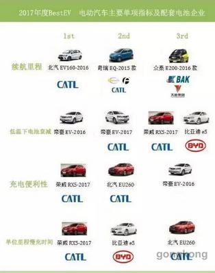 2017年最優(yōu)電動汽車排名及上榜車型配套動力電池公司