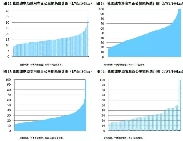 從各型車的百公里能量消耗的角度,以中數(shù)評估主要的車型整體的評價表現(xiàn)情況,乘用車為14.6kWh/100km,客車為46.9kWh/100km,專用車為24.3kWh/100km,貨車為27.8kWh/100km。