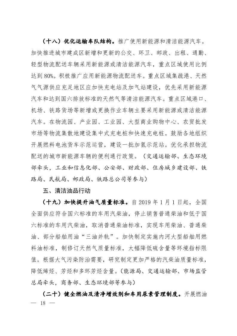 1月4日,生態(tài)環(huán)境部、國(guó)家發(fā)展和改革委員會(huì)、工業(yè)和信息化部、公安部、財(cái)政部、交通運(yùn)輸部、商務(wù)部、國(guó)家市場(chǎng)監(jiān)督管理總局、國(guó)家能源局、國(guó)家鐵路局、中國(guó)鐵路總公司11部門聯(lián)合印發(fā)《柴油貨車污染治理攻堅(jiān)戰(zhàn)行動(dòng)計(jì)劃》。