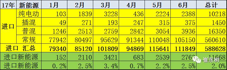 一、17年上半年新能源汽車進口分析