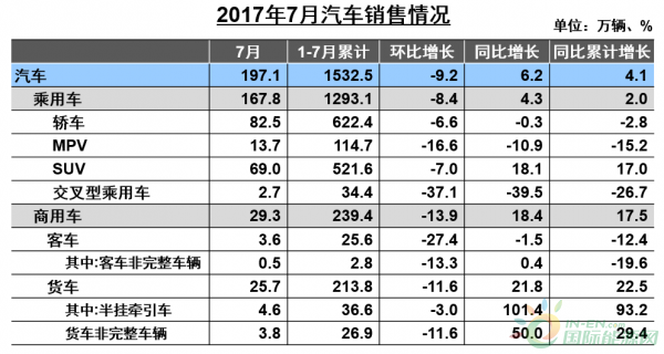 中汽協(xié)秘書長(zhǎng)助理陳士華表示,1-7月中國(guó)汽車銷量同比增長(zhǎng)4.1%,符合國(guó)內(nèi)汽車發(fā)展的大環(huán)境,也與中汽協(xié)預(yù)計(jì)全年增長(zhǎng)5%的預(yù)期相差不大。