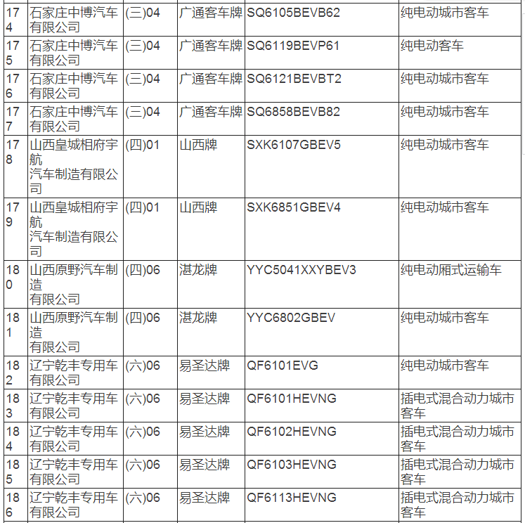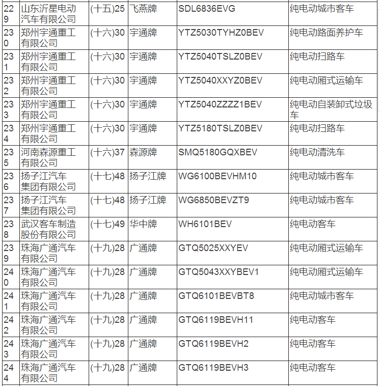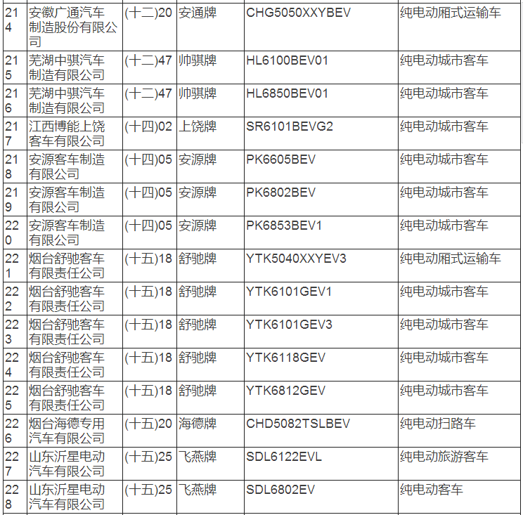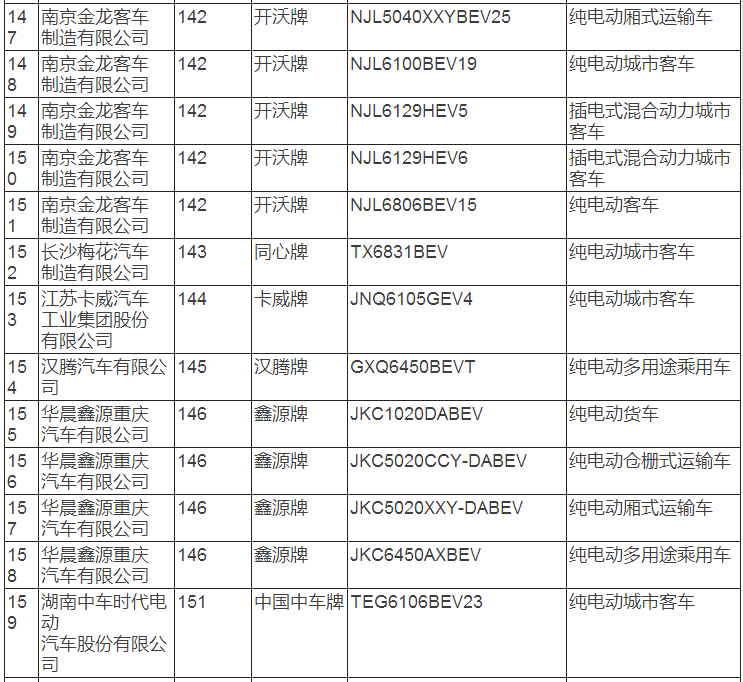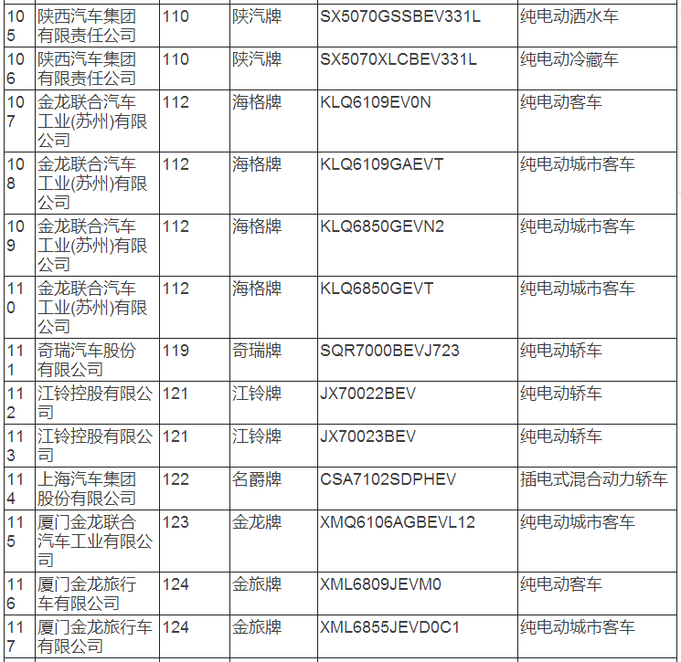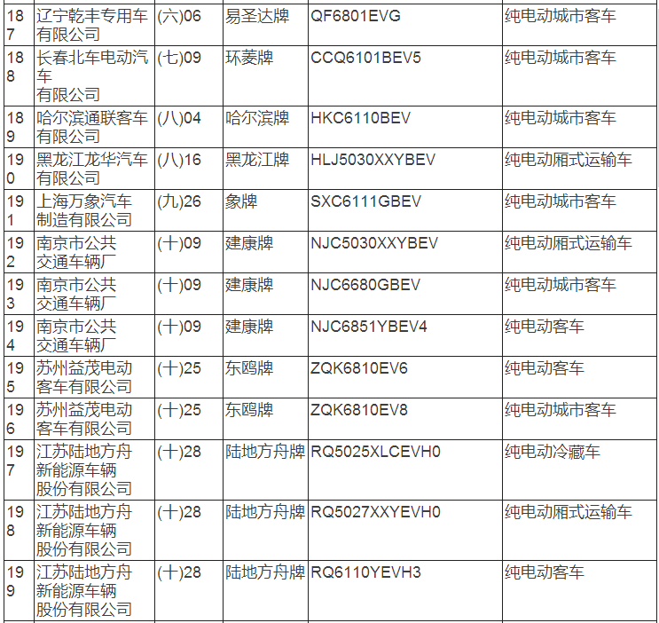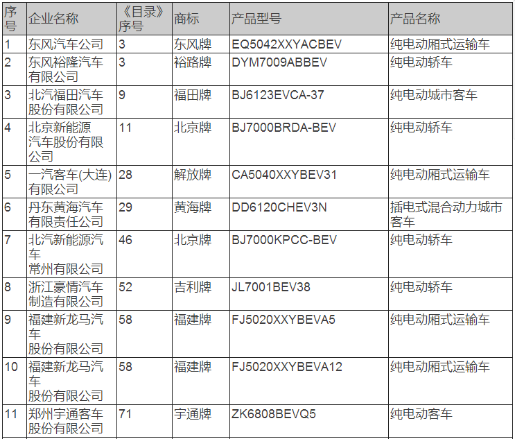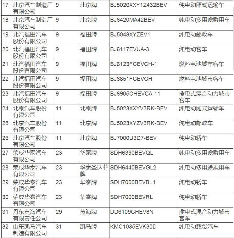 新能源汽車推廣應用推薦車型目錄(2017年第8批)