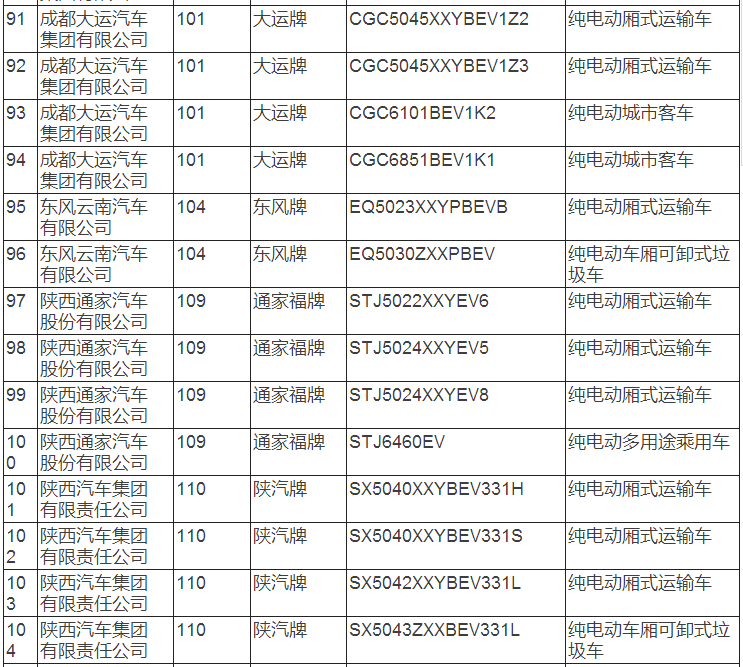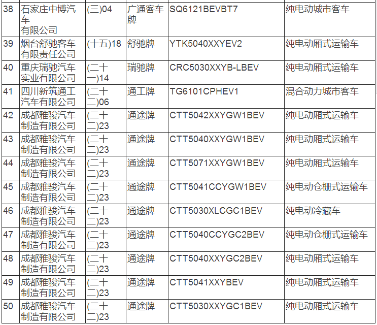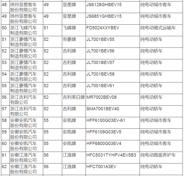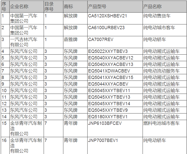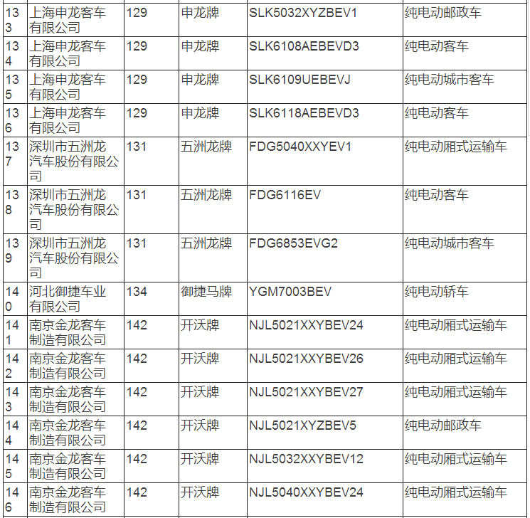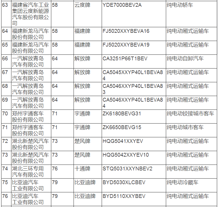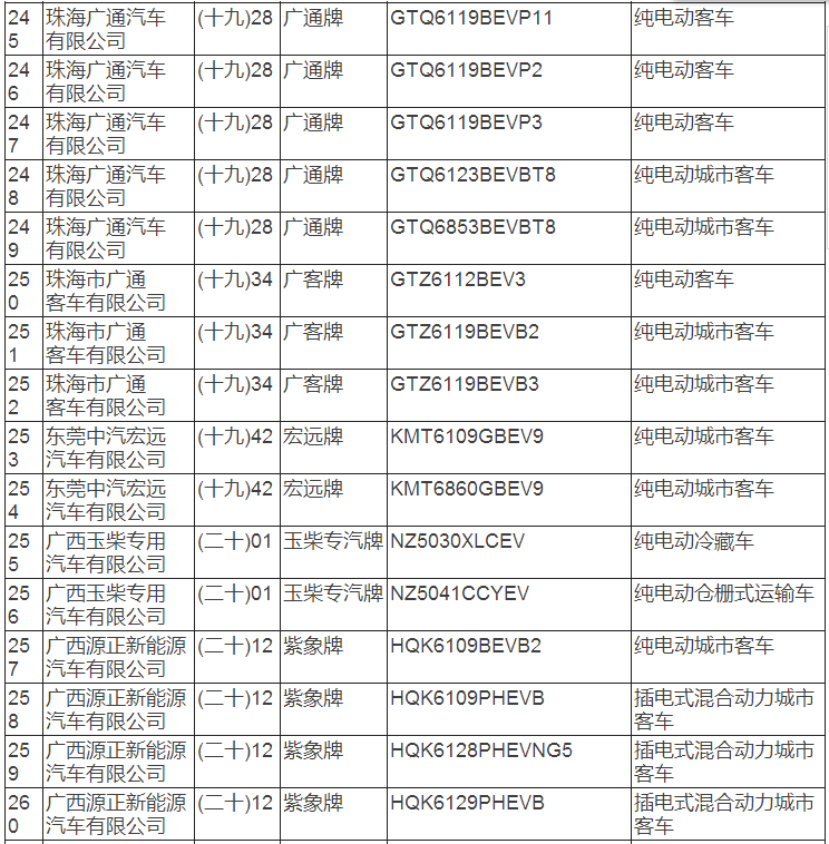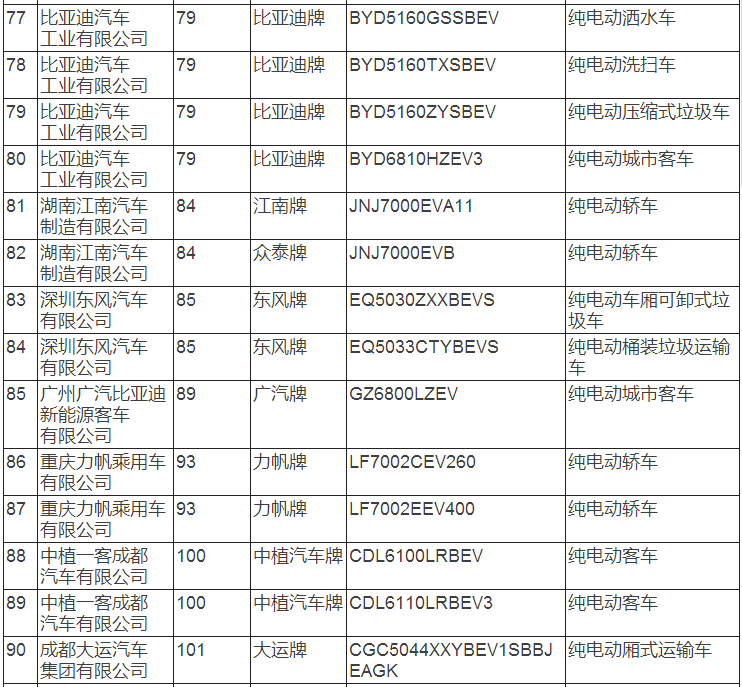 新能源汽車推廣應用推薦車型目錄(2017年第8批)