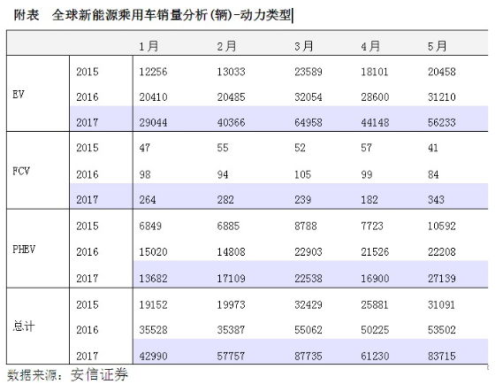 以上數(shù)據(jù)表明,全球新能源車依然保持高增長速度,其中又以純電動車為主,而燃料電池汽車雖然成長速度較快,但總量依然較小。