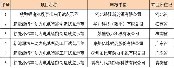 根據(jù)名單,銀隆、孚能科技、妙盛動力、億緯鋰能、比克動力、青海時(shí)代新能源6家企業(yè)申報(bào)的新能源汽車動力電池相關(guān)項(xiàng)目入選。