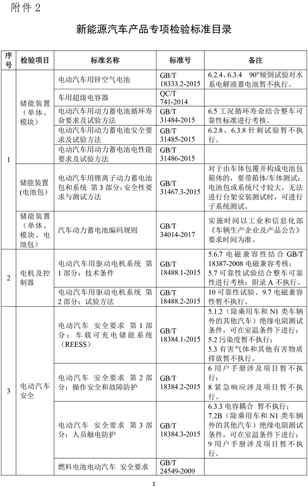 2.新能源汽車產(chǎn)品專項(xiàng)檢驗(yàn)標(biāo)準(zhǔn)目錄
