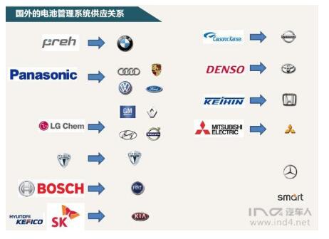 圖1 國(guó)外的電池管理系統(tǒng)供應(yīng)格局