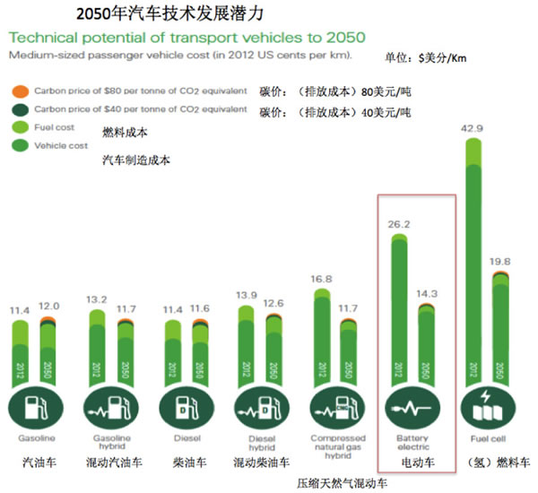綜合來看(圖二),發(fā)動機小型化的汽油車在節(jié)能環(huán)保領(lǐng)域的成本最低,而電動汽車與氫燃料汽車的能節(jié)能成本過高,目前每降低1噸CO2排放,氫燃料汽車需花費$2050美元,電動車需花費$1100,BP認(rèn)為新能源汽車的發(fā)展將是一個循序漸進的過程,還需要較長時間的技術(shù)積累。