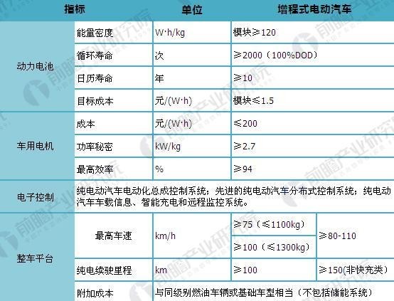 圖表1:增程式電動(dòng)汽車(chē)主要技術(shù)指標(biāo)