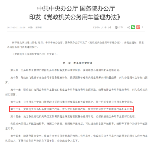 其實,早在2016年部署“十三五”節(jié)約能源資源工作時,提出更新公務(wù)用車中新能源汽車的比例要達(dá)到50%以上。如今普及到全國,也是一件水到渠成的事情。