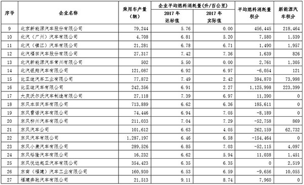2017年度乘用車(chē)企業(yè)平均燃料消耗量與新能源汽車(chē)積分情況
