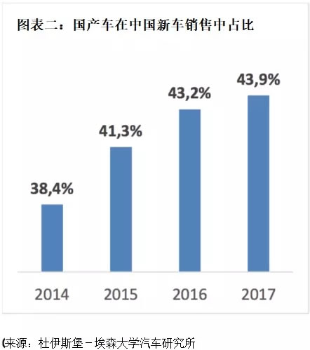 中國汽車生產(chǎn)商扮演者越來越重要的角色。不僅僅在2010收購沃爾沃、參股沃爾沃卡車和戴姆勒的吉利,其他中國汽車制造商在中國的市場份額也在不斷擴(kuò)張。像陸風(fēng)或雙環(huán)CEO這樣的汽車已經(jīng)成為歷史。中國的汽車制造商提供“最先進(jìn)的”技術(shù)。 2017年,中國品牌在中國的市場份額達(dá)到43.9%。 在SUV領(lǐng)域,中國品牌的市場份額達(dá)到60.6%。中國品牌在大容量汽車(Vans和MPV)的市場份額甚至達(dá)到83.5%。中國人開始逐漸參與制定全球汽車行業(yè)規(guī)則。