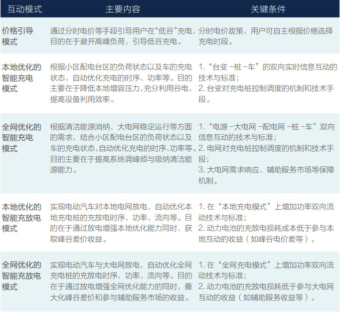 根據(jù)互動目的、手段與層次不同,“車-樁-網(wǎng)”互動可以分為價格引導模式、本地優(yōu)化的智能充電模式、全網(wǎng)優(yōu)化的智能充電模式、本地優(yōu)化的智能充放電模式、全網(wǎng)優(yōu)化的智能充放電模式共五種互動模式。