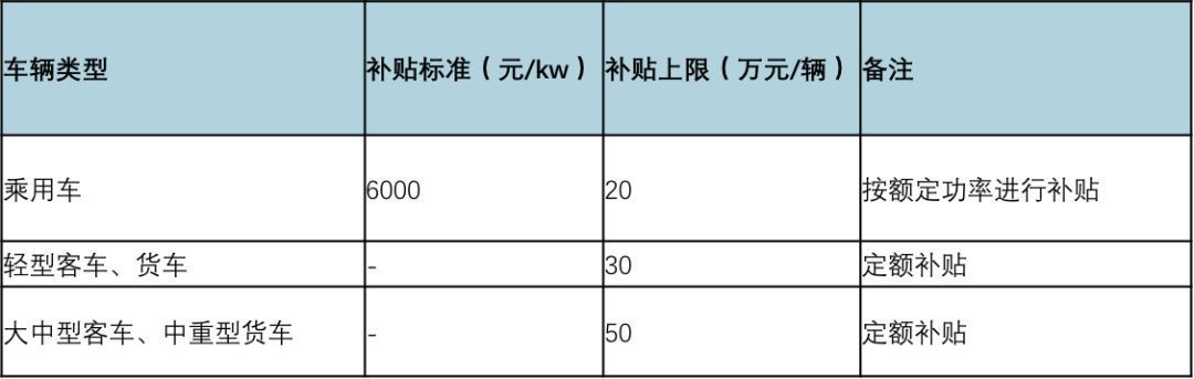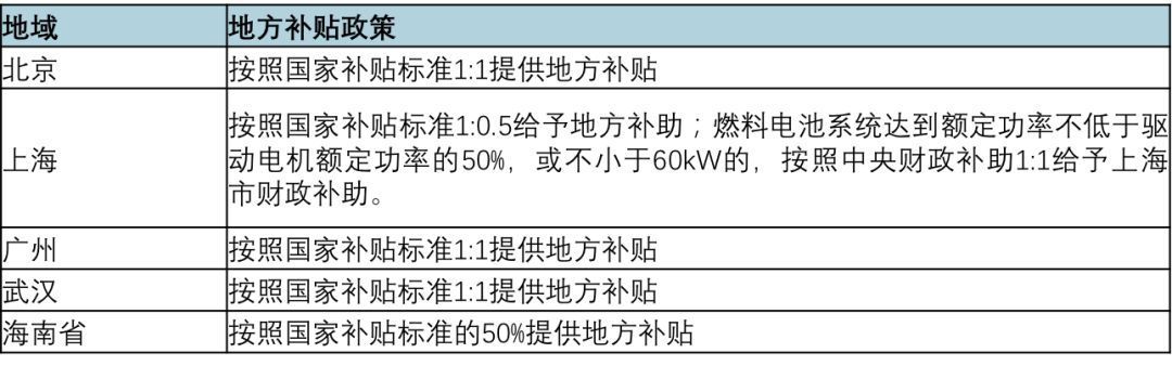 燃料電池汽車地方補(bǔ)貼標(biāo)準(zhǔn)