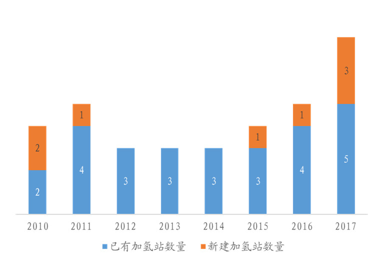 截至2018年5月,中國在運(yùn)營的加氫站數(shù)量已經(jīng)達(dá)到12個(gè),較2017年底又增加了4個(gè)。盡管目前已有另外19個(gè)加氫站正在規(guī)劃建設(shè)中,但目前的加氫站密度仍然不足以支撐燃料電池車的商業(yè)化推廣。高昂的建站成本及運(yùn)營成本、國產(chǎn)核心設(shè)備缺失使得加氫站數(shù)量難以在短期內(nèi)大幅提升。