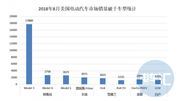 如果算上Model S和Model X,特斯拉8月僅在美國(guó)本土就交付約23,175輛,約占8月份美國(guó)銷售的所有電動(dòng)汽車(chē)的三分之二。上半年美國(guó)市場(chǎng)累計(jì)銷售約19萬(wàn)輛電動(dòng)汽車(chē)中特斯拉銷量達(dá)到84,127輛。其中特斯拉7月Model 3的出貨量?jī)H為1.425萬(wàn)輛,還剩42萬(wàn)凈預(yù)訂量,所以8月銷量猛增也不算意外??梢灶A(yù)見(jiàn)的是,這家汽車(chē)制造商將占到2018年在美國(guó)銷售的所有電動(dòng)汽車(chē)的一半以上。