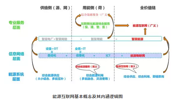 能源互聯(lián)網(wǎng)是一個(gè)龐大的系統(tǒng),它是能源層+信息層+服務(wù)層的綜合構(gòu)成,如果進(jìn)一步與具體企業(yè)關(guān)聯(lián),那么還有一個(gè)更高的存在,即商業(yè)運(yùn)營層,它關(guān)注綜合能源服務(wù)是如何轉(zhuǎn)化為不同的企業(yè)形態(tài)而存在的。在每個(gè)層面都蘊(yùn)含和潛藏著一系列的市場(chǎng)機(jī)會(huì),因此如果要在眾多的細(xì)分市場(chǎng)中找到一個(gè)合適的定位與切入,首先需要我們建立針對(duì)能源互聯(lián)網(wǎng)、綜合能源服務(wù)的系統(tǒng)性認(rèn)識(shí)。然而由于能源互聯(lián)網(wǎng)系統(tǒng)橫跨多個(gè)業(yè)務(wù)領(lǐng)域,現(xiàn)實(shí)的情況是很多認(rèn)識(shí)都是局部的、片面的,很少有人建立對(duì)其的層次化、體系化認(rèn)知,所以很多的戰(zhàn)略決策與經(jīng)營選擇也就比較盲目。