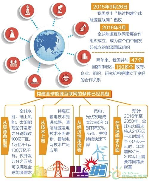 面對(duì)世界能源發(fā)展面臨的資源緊張、環(huán)境污染、氣候變化等挑戰(zhàn),2015年9月26日,我國(guó)發(fā)出了“探討構(gòu)建全球能源互聯(lián)網(wǎng)”的倡議。2016年3月份,全球能源互聯(lián)網(wǎng)發(fā)展合作組織成立,成為首個(gè)由中國(guó)發(fā)起成立的能源國(guó)際組織。