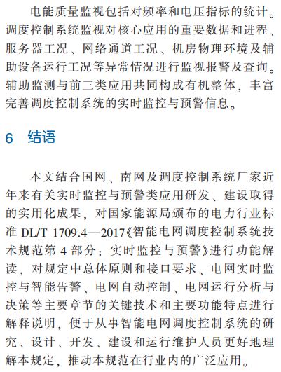 本文在對(duì)中國(guó)智能電網(wǎng)調(diào)度控制系統(tǒng)實(shí)時(shí)監(jiān)控與預(yù)警類應(yīng)用功能研究的基礎(chǔ)上,對(duì)今年來相關(guān)應(yīng)用建設(shè)和實(shí)用化成果進(jìn)行提煉總結(jié),形成電力行業(yè)標(biāo)準(zhǔn)DL T 1709 4-2017《智能電網(wǎng)調(diào)度控制系統(tǒng)技術(shù)規(guī)范第4部分:實(shí)時(shí)監(jiān)控