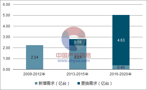 電表屬于強制檢定設備,到期需要更換,更換周期一般為 5-8 年。預計 2016年~2020 年,兩網(wǎng)公司將招標 5.03 億臺智能電表,其中 4.63 億臺為更換需求。