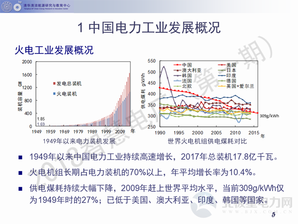 1949年以來,中國電力工業(yè)持續(xù)高速發(fā)展,2017年的裝機(jī)總量已經(jīng)到了19.8億千瓦,火電機(jī)組占裝機(jī)總?cè)萘康?0%以上,年均平均增長率10.4%,現(xiàn)在供電煤耗也大幅度增加,2009年已經(jīng)趕上了世界平均水平,當(dāng)前我國的煤耗量是1949年的27%,已低于美國、韓國、澳大利亞、印度等國家。我國的資源是將煤作為主要的一次能源,全球范圍來看,能源供給、能源安全等構(gòu)成全球發(fā)展的主要問題,未來我國能源煤炭比重將下降,但其基礎(chǔ)地位不可動(dòng)搖,本身基礎(chǔ)發(fā)電要靠煤,同時(shí)還要為可再生能源進(jìn)行調(diào)峰;從電網(wǎng)需求來說新能源的調(diào)峰需求很大,燃煤發(fā)電將發(fā)揮更大的作為用,所以煤電與可再生能源協(xié)同,同時(shí)我們要取決于煤電的革命。
