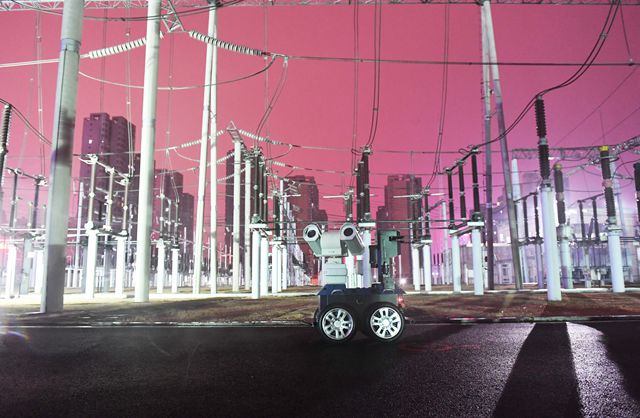 安徽省一變電站內,智能電網巡檢機器人正在對站內設備進行夜間巡視。東方IC圖