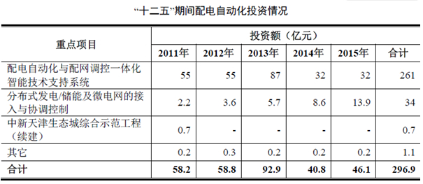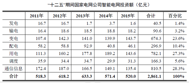 “十二五”期間,國家電網(wǎng)公司電網(wǎng)智能化投資總額為2,861.1億元,年均投資為572.2億元,較“十一五”期間250億元的年均投資額增長一倍。上述投資涉及發(fā)電、輸電、變電、配電、用電及調(diào)度六個(gè)環(huán)節(jié),其中配電環(huán)節(jié)是電網(wǎng)智能化的核心投資領(lǐng)域之一,也是智能監(jiān)控系統(tǒng)及組件產(chǎn)品提供商參與最多的環(huán)節(jié)。配電網(wǎng)自動(dòng)化系統(tǒng)及相應(yīng)的配電網(wǎng)調(diào)控一體化系統(tǒng)正在前兩批試點(diǎn)23個(gè)城市展開建設(shè),第三批6個(gè)城市試點(diǎn)項(xiàng)目也處于評審階段,預(yù)計(jì)“十二五”期間將有更多的城市進(jìn)入試點(diǎn)范圍,并在全國范圍內(nèi)推廣。