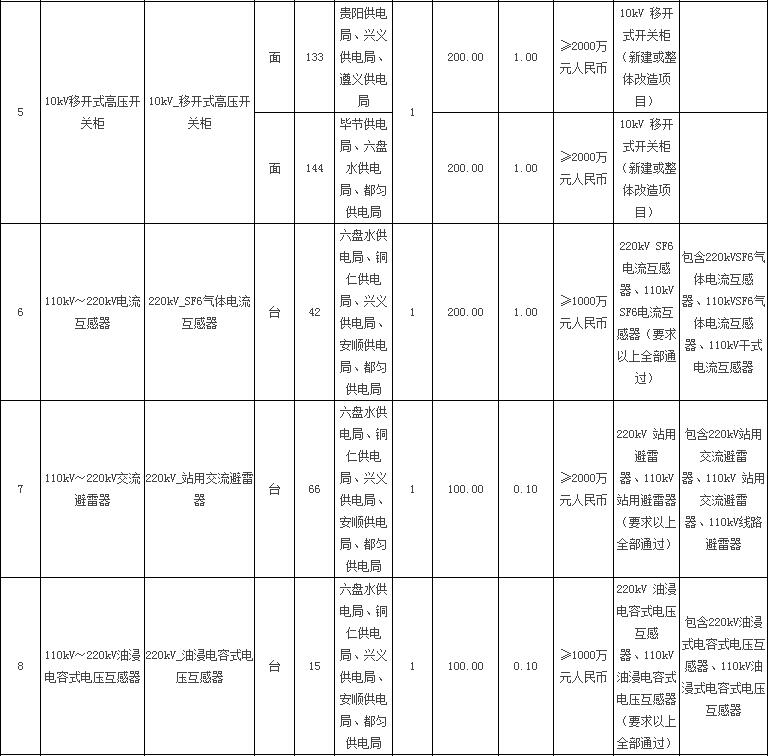 貴州電網(wǎng)2017年第四批省級(jí)集中采購(gòu)物資(一次設(shè)備)專項(xiàng)招標(biāo)