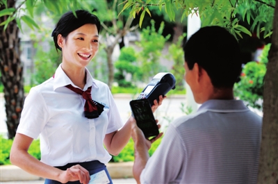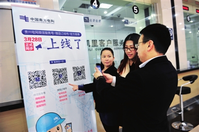 廣西電網(wǎng)南寧邕寧供電公司通過95598信息平臺,把服務(wù)信息發(fā)到客戶的手機上??蛻糁恍柚讣廨p點,就對服務(wù)信息一目了然。馬華斌 攝客戶體驗東莞供電局微服務(wù)。葉琳琳 攝在海南,客戶可掃二維碼交電費。田丹妮 攝
