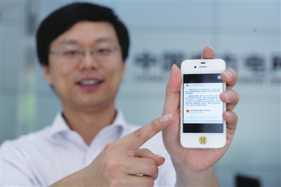 廣西電網(wǎng)南寧邕寧供電公司通過95598信息平臺,把服務(wù)信息發(fā)到客戶的手機上??蛻糁恍柚讣廨p點,就對服務(wù)信息一目了然。馬華斌 攝