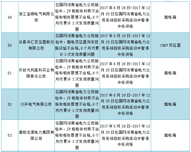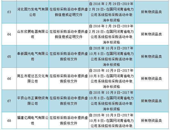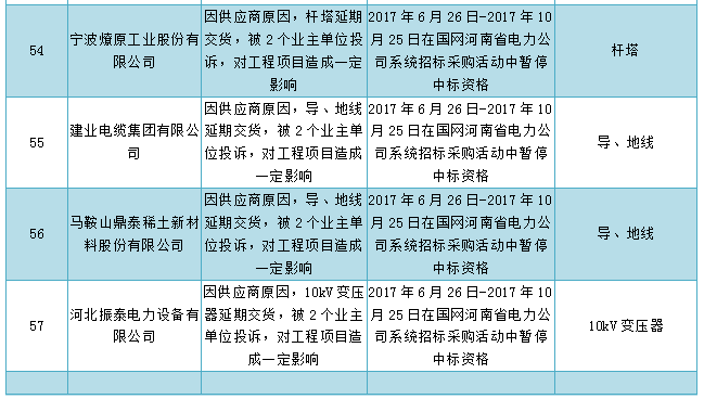 國(guó)網(wǎng)(河南)2017年第三批供應(yīng)商不良行為處置通報(bào)