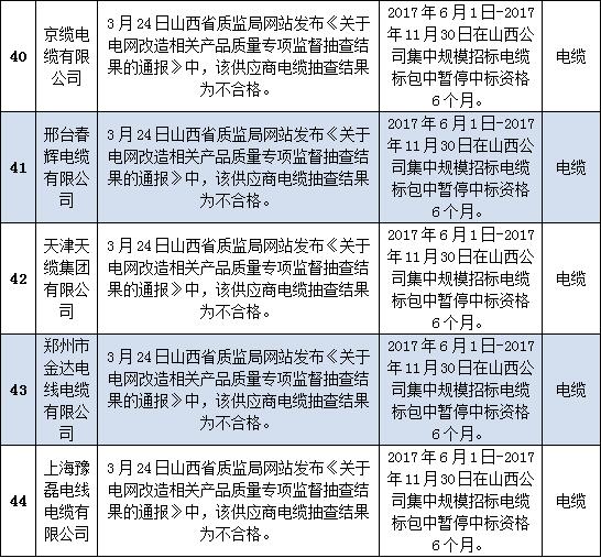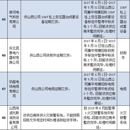 國(guó)網(wǎng)(山西)供應(yīng)商不良行為處理情況的通報(bào)(2017.9)