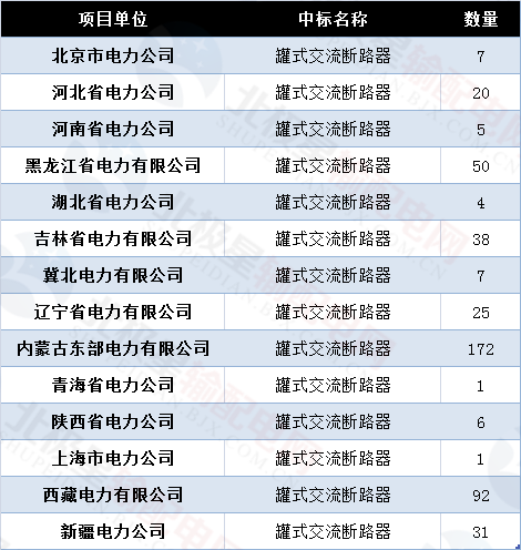 國家電網(wǎng)公司輸變電項目變電設(shè)備招標(biāo)1-6批次罐式交流斷路器招標(biāo)情況