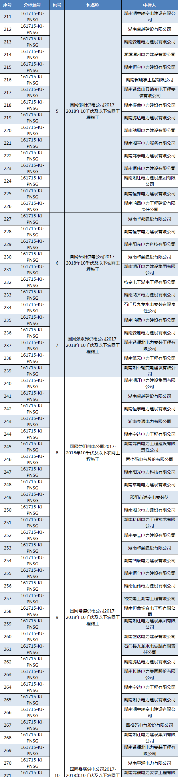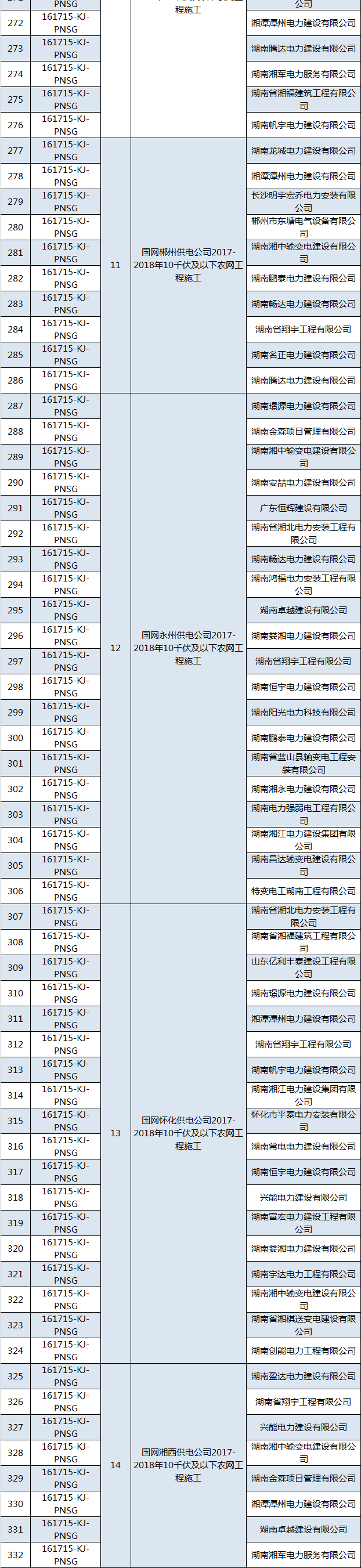 國(guó)網(wǎng)(湖南)2017年第五次工程及服務(wù)項(xiàng)目招標(biāo)采購(gòu)中標(biāo)結(jié)果