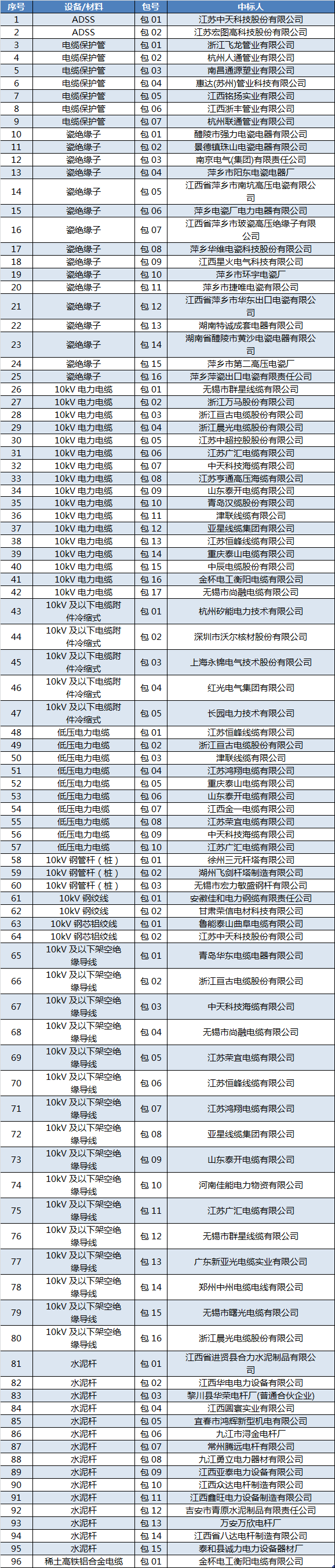 國(guó)網(wǎng)(江西)2017年第二次配網(wǎng)設(shè)備/線(xiàn)材協(xié)議庫(kù)存中標(biāo)結(jié)果