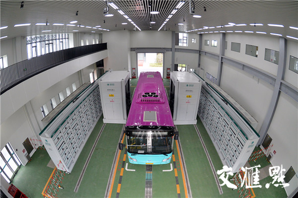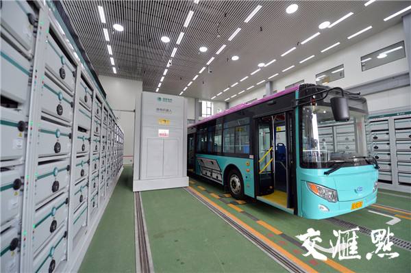 綠色充換電站由光伏發(fā)電系統(tǒng)、充電系統(tǒng)、換電等系統(tǒng)組成。站內(nèi)機(jī)器人可為公交車(chē)、乘用車(chē)提供全自動(dòng)換電和快速充電服務(wù)。