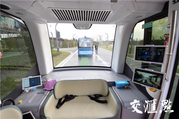 無(wú)人駕駛電動(dòng)車(chē)行駛中。