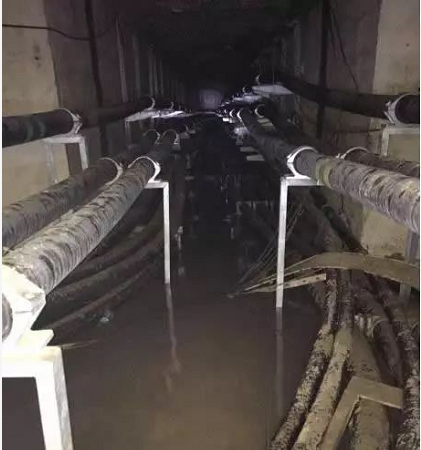 因未考慮周邊環(huán)境,套用其他工程排水設(shè)施設(shè)計(jì)方案,潛水泵位置選取未考慮實(shí)際情況,未在低點(diǎn)設(shè)潛水泵,且未考慮備用潛水泵,導(dǎo)致排水不暢,出現(xiàn)了隧道積水嚴(yán)重等問題。而該工程設(shè)計(jì)時,并未考慮有水運(yùn)行情況,接頭、附件等設(shè)施均未按有水設(shè)計(jì)。